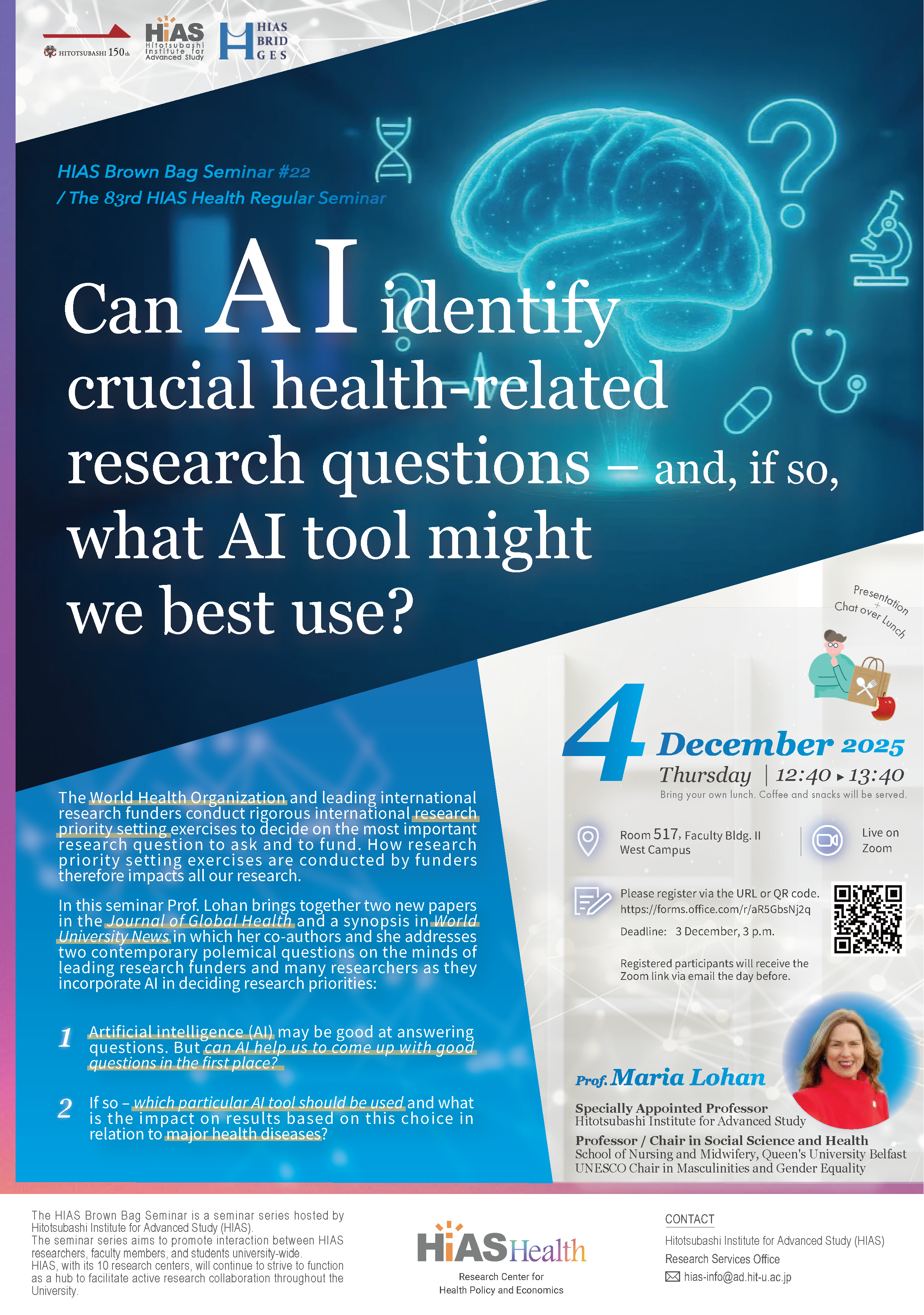 | 会場 | ハイブリッド開催(対面:西キャンパス第2研究館5階 HIASセミナー室(517室 / オンライン:Zoom) |