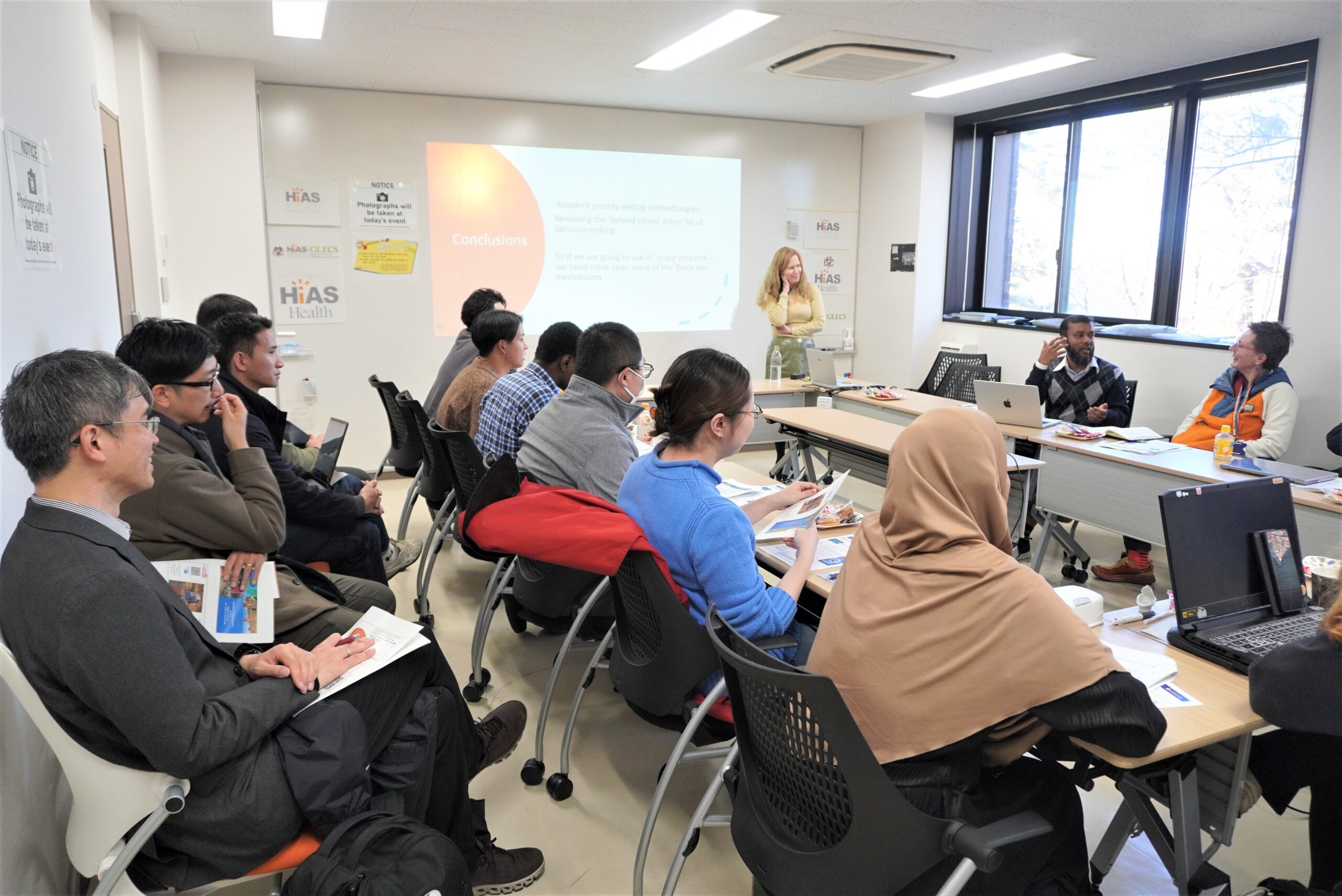 「Can AI Identify Crucial Health-related Research Questions – and, if so, What AI Tool Might We Best Use?」のタイトルで報告が行われ、報告内容について活発な議論が行われました。