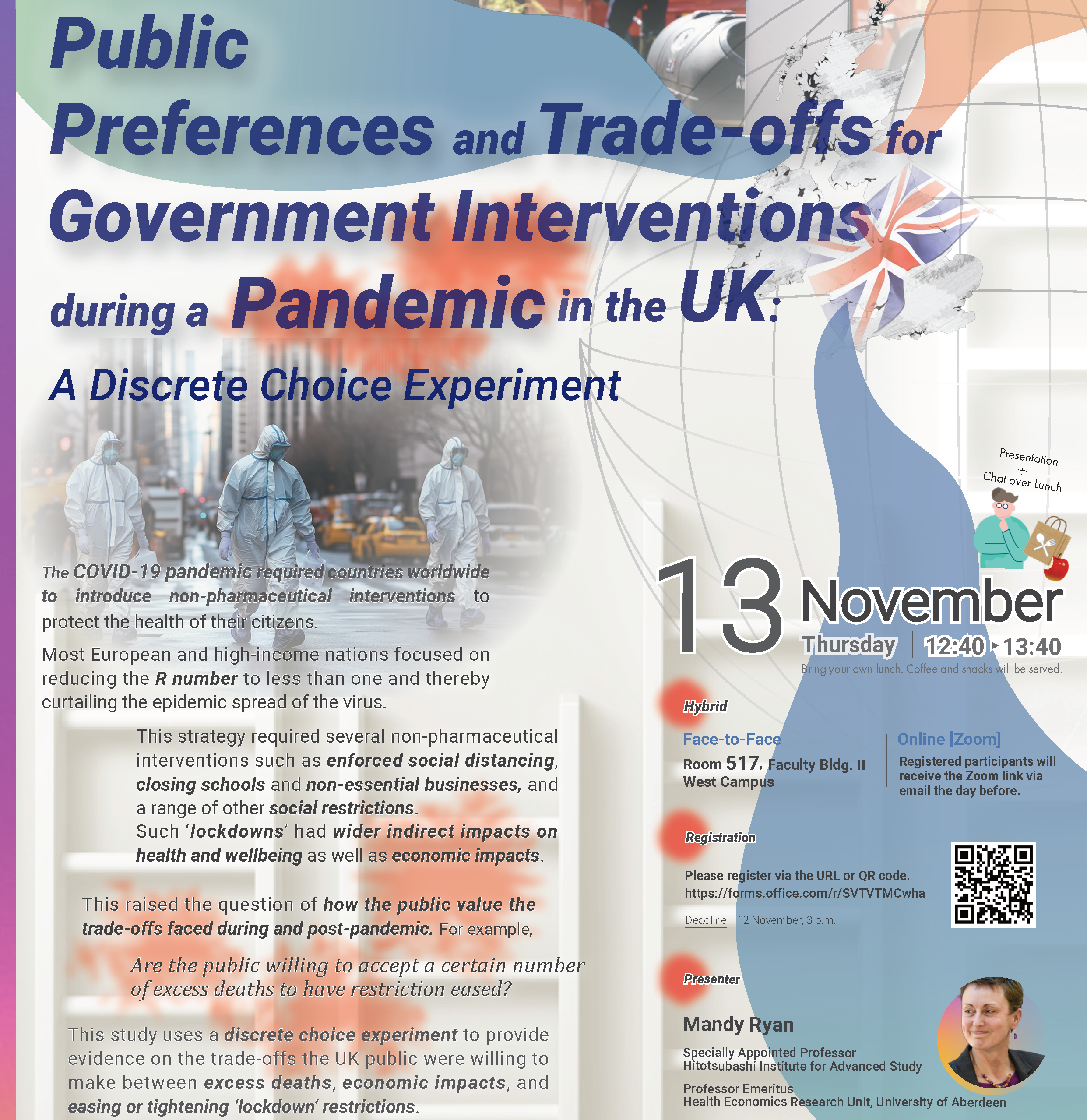 SpeakerMandy Ryan (Specially Appointed Professor, HIAS, Emeritus Professor, Health Economics Research Unit, University of Aberdeen)